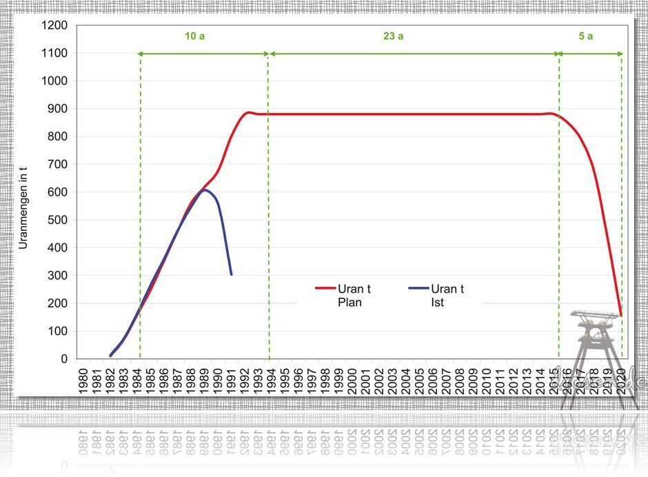 Bild 5: Tatsächlicher und geplanter Ablauf der Urangewinnung im BB Drosen