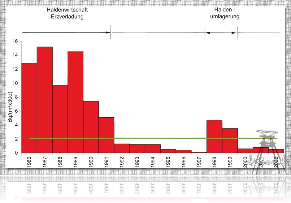 (1991 Sanierungsabbau) ging der Radonausstoß auf 40 % und der Ausstoß langlebiger Alphastrahler