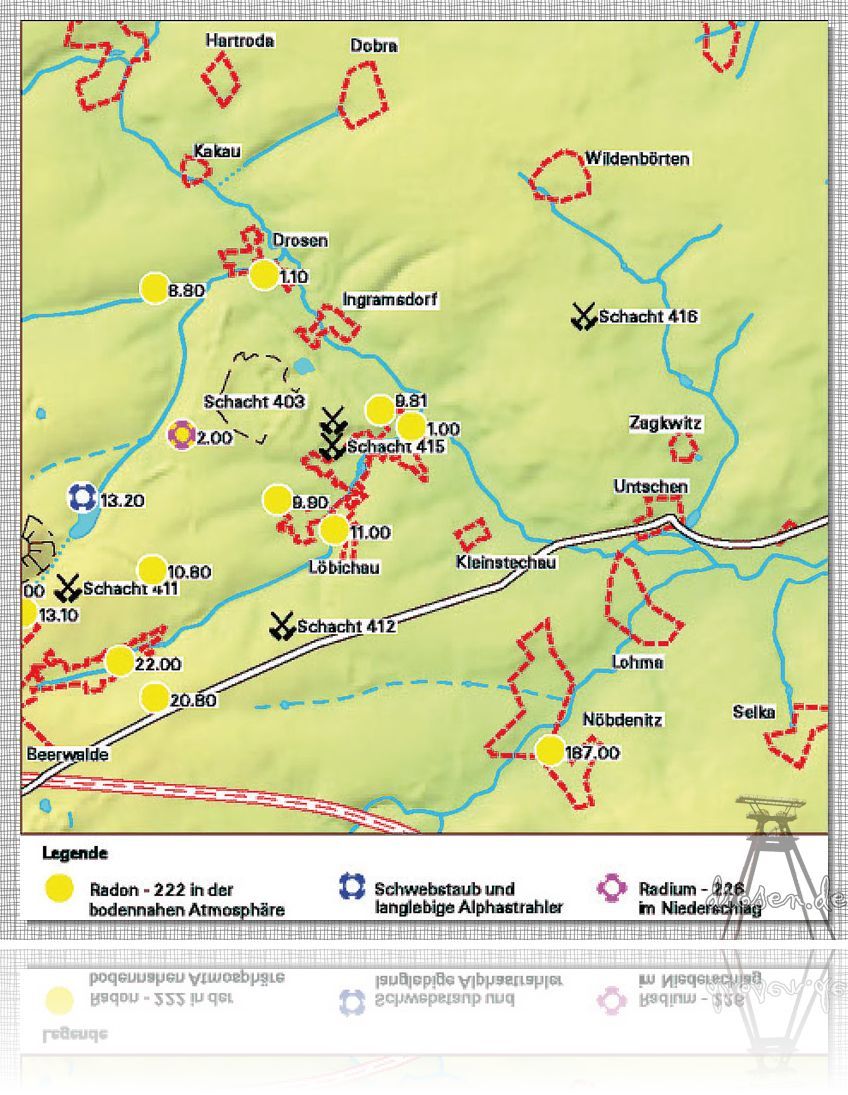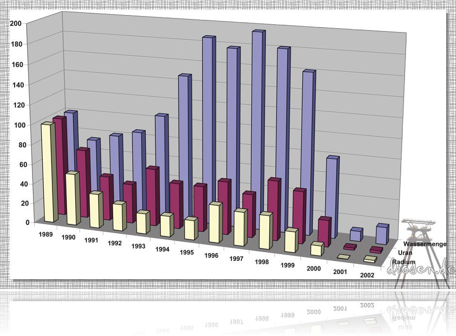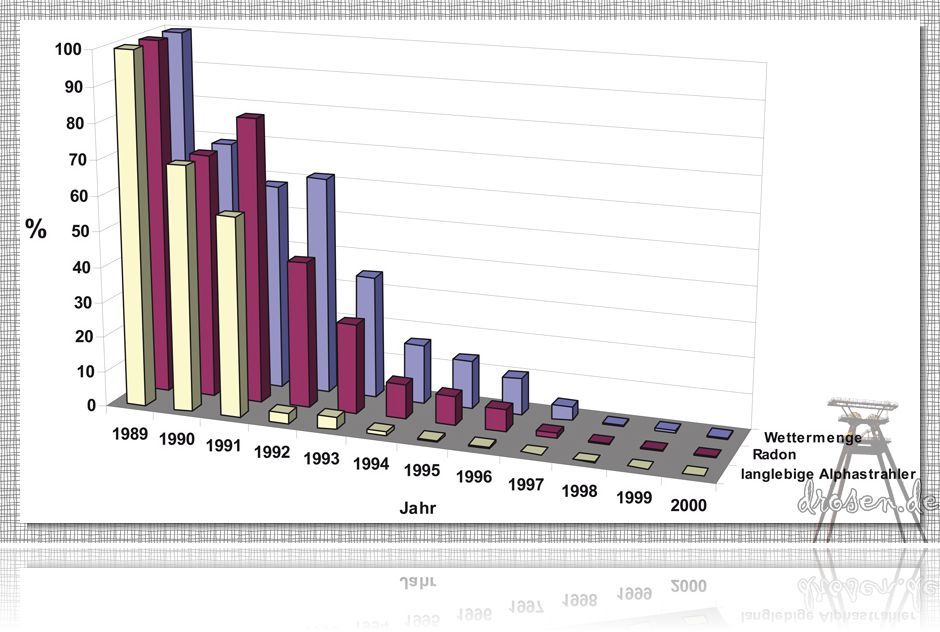 (1991 Sanierungsabbau) ging der Radonausstoß auf 40 % und der Ausstoß langlebiger Alphastrahler