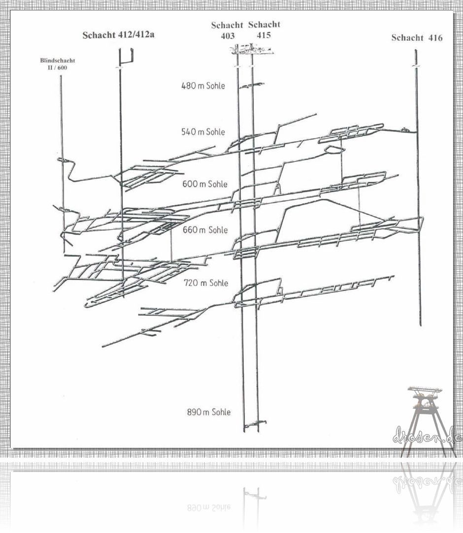 540 m, 720 m und 890 m werden. Insgesamt hätte er neun Sohlen (360 m bis 840 m) bedienen