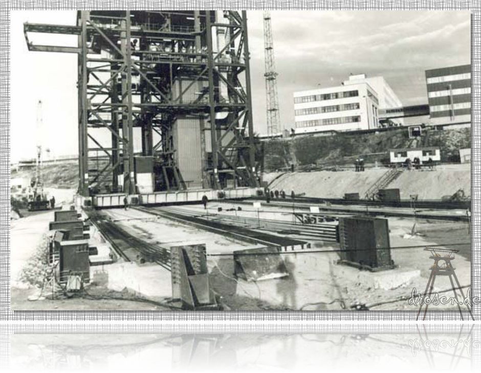 Demontagezeit erreicht werden. Das Fördergerüst des Schachtes 403 (ca. 478 Tonnen) wurde