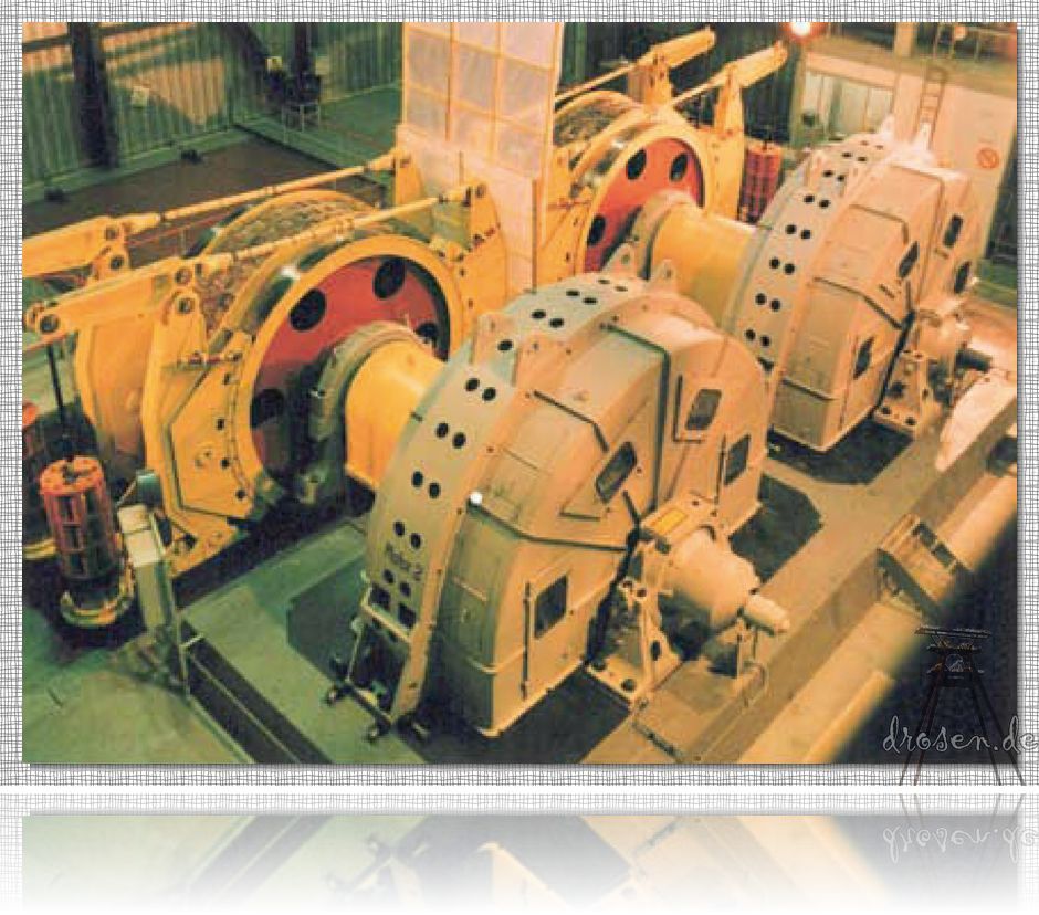 3 x 30 Personen bzw. 3 x 2 Förderwagen. Die Flurfördermaschinen mit je 1.700 kW Leistung