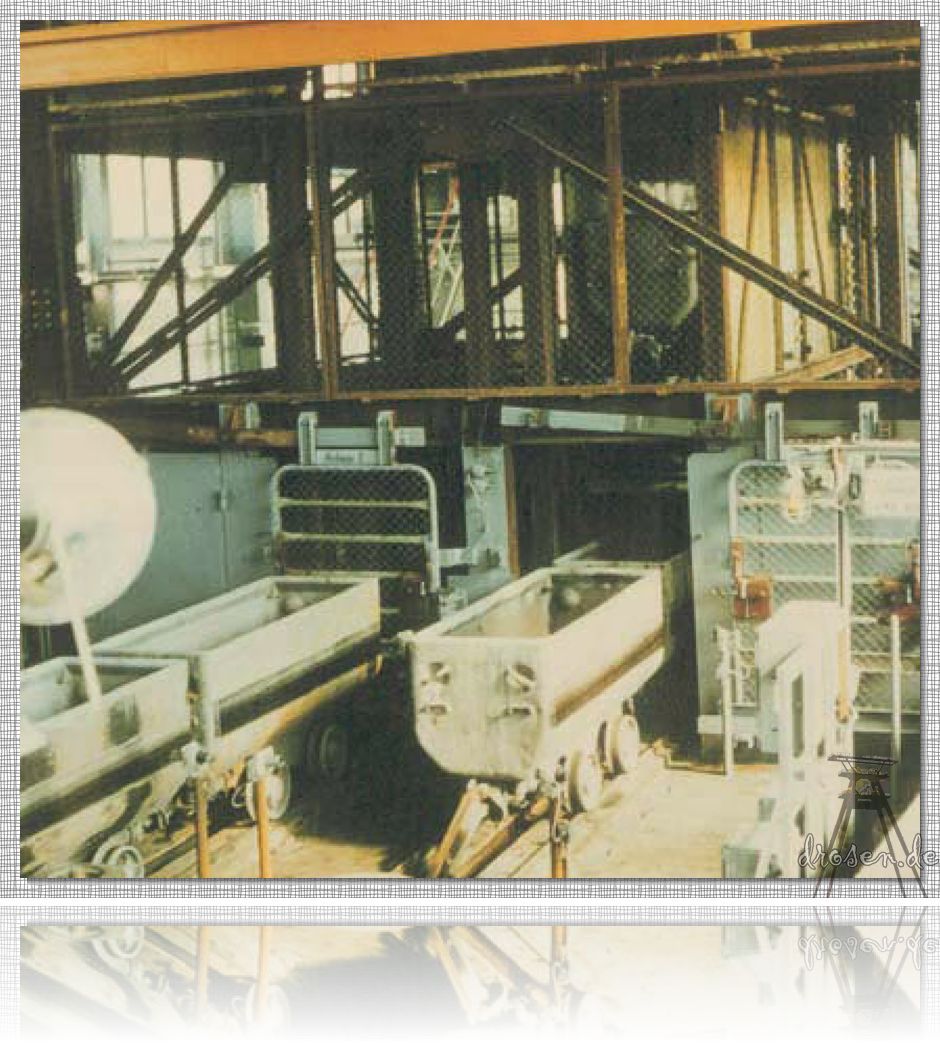 Bild 20: Hängebank Schacht 403 - Förderwagentransport
